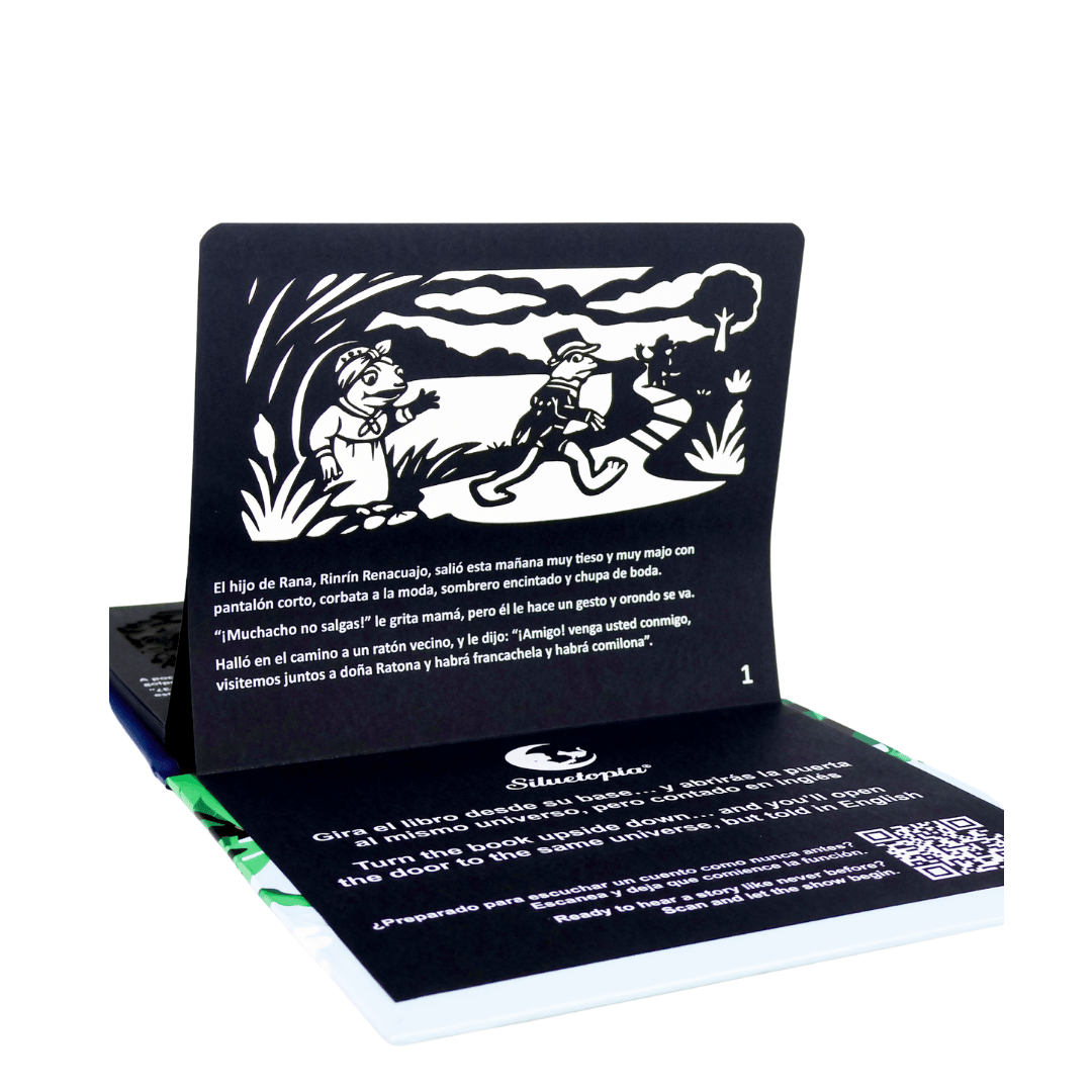 Este no es solo un libro; es una puerta a la imaginación. Con solo una linterna (¡la de tu celular es perfecta!), cada página troquelada se convierte en una escena mágica. Las sombras de Rin Rin Renacuajo, amigo ratón y doña ratona, danzarán en la habitación, creando un recuerdo imborrable justo antes de dormir.
